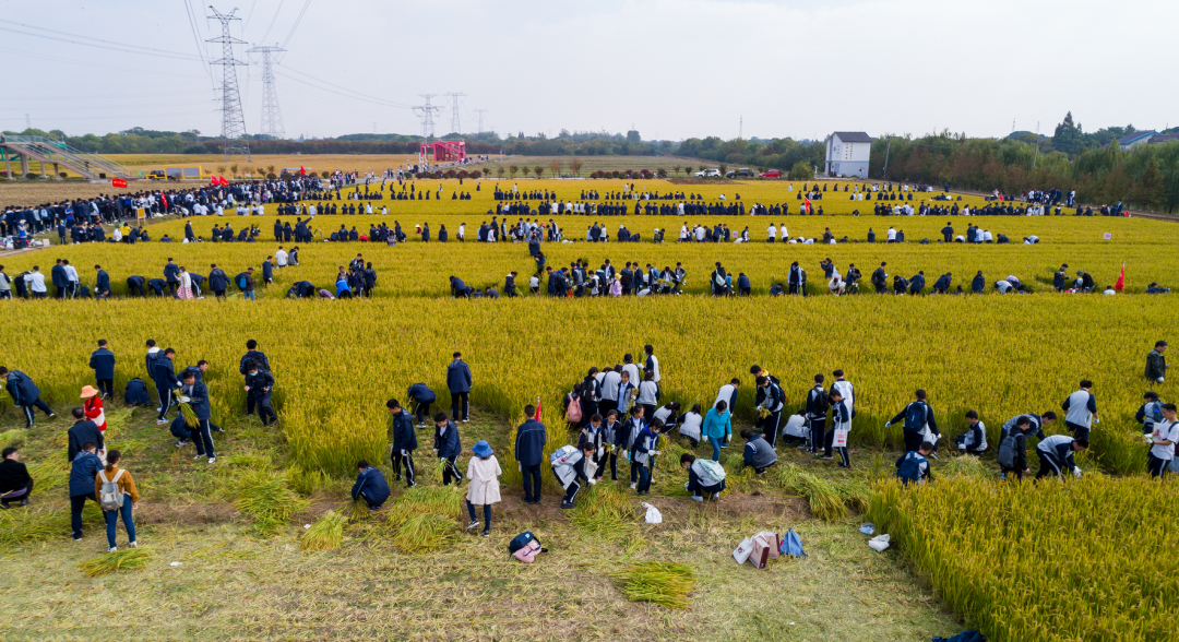 位于錫山區(qū)東港鎮(zhèn)的錫山現(xiàn)代農(nóng)業(yè)產(chǎn)業(yè)園有1050畝稻田,另有港南、嚴家橋、雪浪等多處分園,種植了早、中、晚8個不同品種的水稻,收割季可從10月1日一直持續(xù)到11月15日。今年,產(chǎn)業(yè)園面向幼兒園、中小學(xué)推出了農(nóng)業(yè)研學(xué)活動,市一中、天一中學(xué)、輔仁高中、梅村中學(xué)、天一實小、崇安中心幼兒園等學(xué)校都將今年的學(xué)生秋游目的地選在這里,水稻田里出現(xiàn)了從未有過的“群娃割稻”盛況。