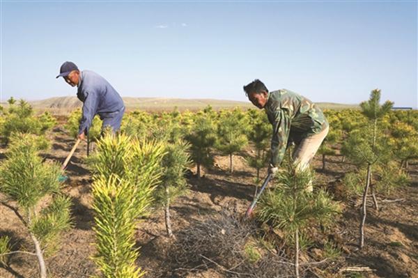 貧困戶對生態(tài)工程進行管護。圖片來源:包頭日報