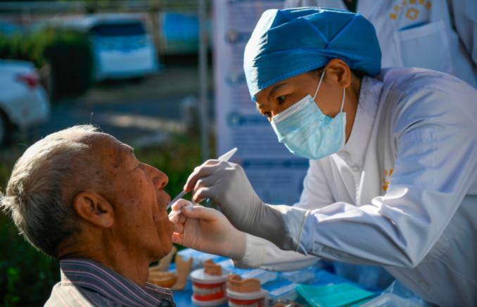 醫(yī)生在為村民檢查牙齒 圖片來源:新華社