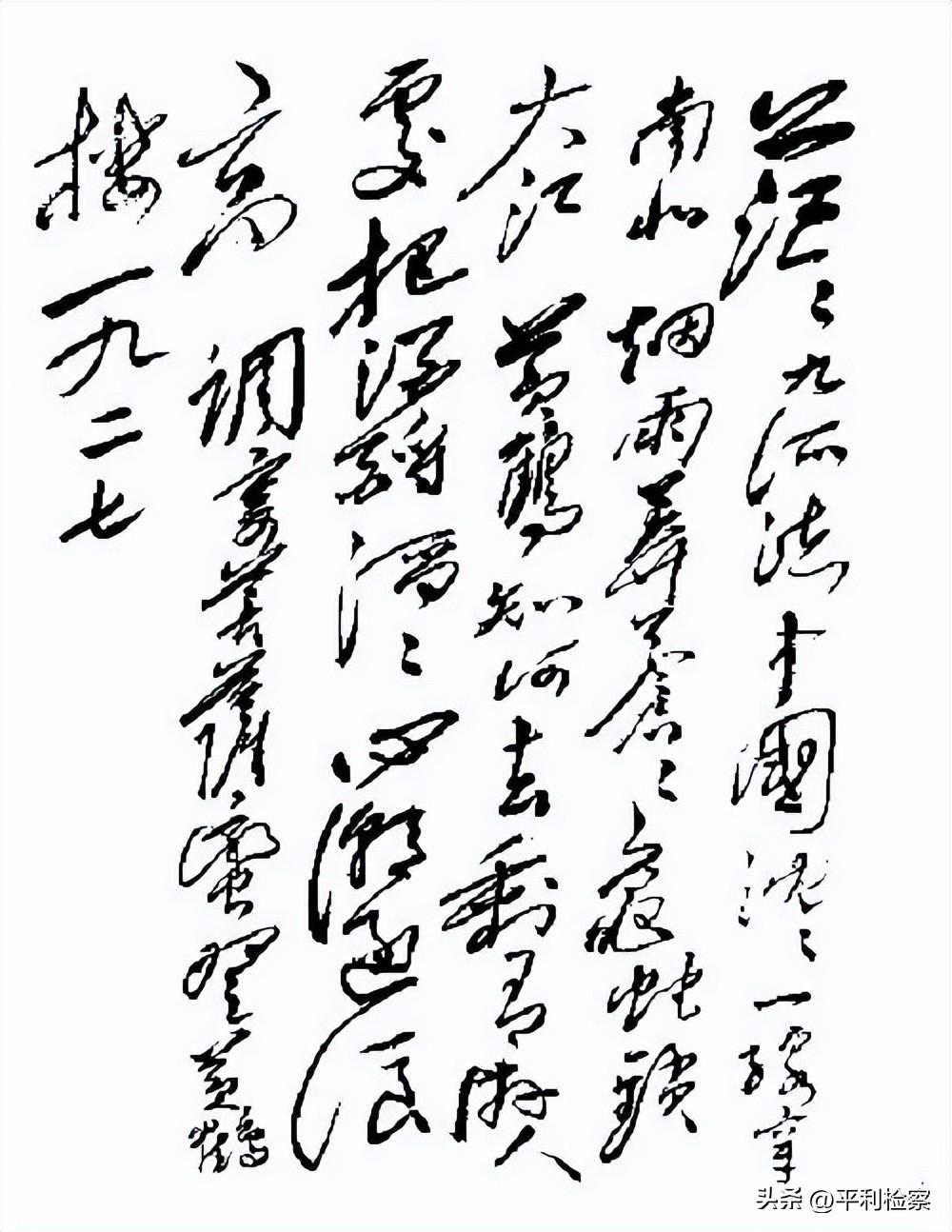 鐘山風(fēng)雨起蒼黃,百萬雄師過大江。虎踞龍盤今勝昔,天翻地覆慨而慷。 宜將勝勇追窮寇,不可沽名學(xué)霸王。天若有情天亦老,人間正道是滄桑?!?注:“天若有情天亦老”手跡中一作“天未有情天亦老”。