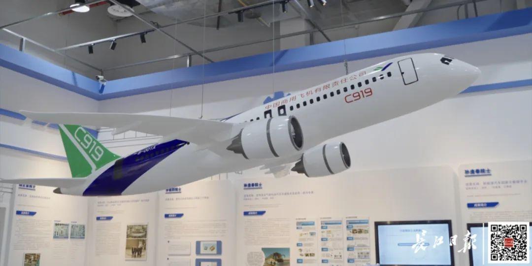 該中心展示的民用大型客機(jī)C919模型。記者陳潔 攝