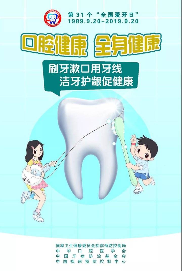 2019年9月20日是第31個(gè)“全國(guó)愛(ài)牙日”。今年的愛(ài)牙日主題是“口腔健康 全身健康”,副主題是“刷牙漱口用牙線 潔牙護(hù)齦促健康”,以口腔健康與全身健康的關(guān)系為切入點(diǎn),加大口腔健康科普宣傳力度,提高群眾口腔健康意識(shí),建立自我口腔健康行為,營(yíng)造有利于口腔健康的良好社會(huì)氛圍。
