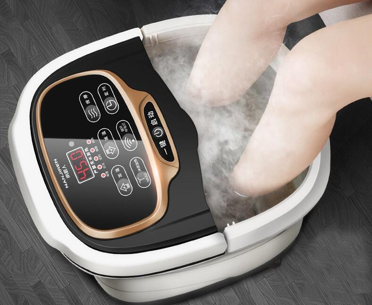 這就是一款典型的泡腳+按摩的足浴盆了,機(jī)身內(nèi)部有6個按摩滾輪和2個振動板,前腳掌、腳心、腳跟都能按摩到,腳底的多個穴位也都能受到刺激,起到養(yǎng)生保健的作用;并且還有氣泡噴出口,開啟之后就會有大量氣泡沖擊腳底,泡腳也會更加舒服。泡腳功能自然是基本的了,750W加熱管擁有10重防觸電措施,恒溫加熱能讓洗腳水的溫度恒定,合適的水溫才好舒適的“腳感”。