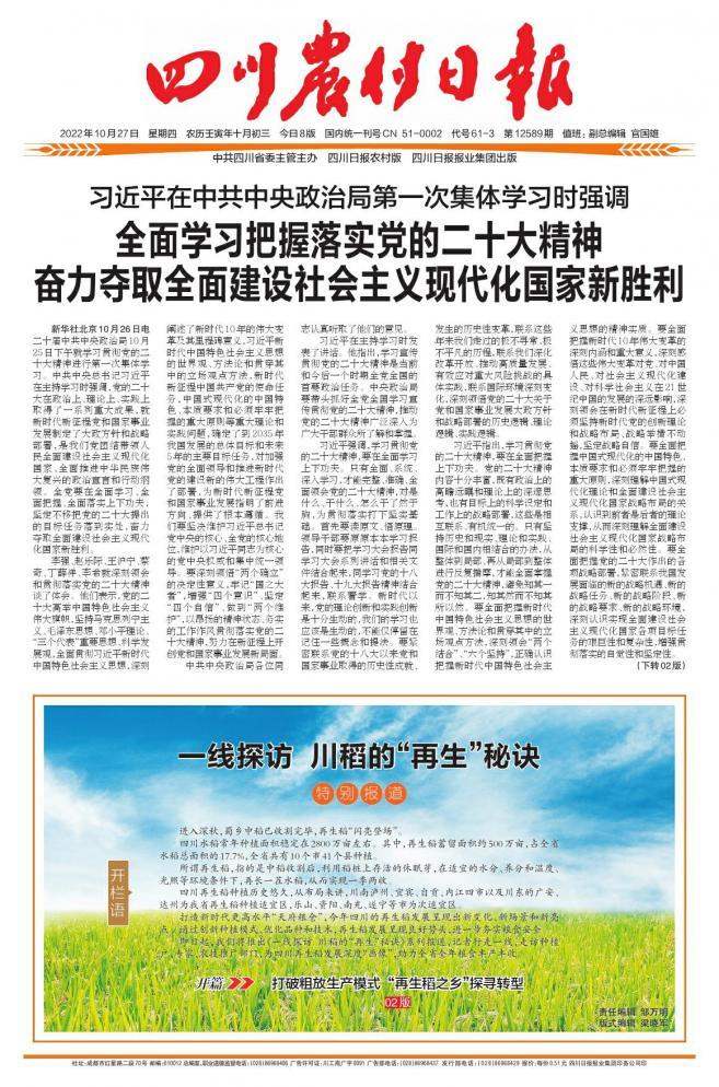 即日起,我們將推出《一線探訪 川稻的“再生”秘訣》系列報(bào)道,記者行走一線,走訪種植戶、專家、農(nóng)技推廣部門,為四川再生稻發(fā)展深度“畫像”,助力全省全年糧食豐產(chǎn)豐收。