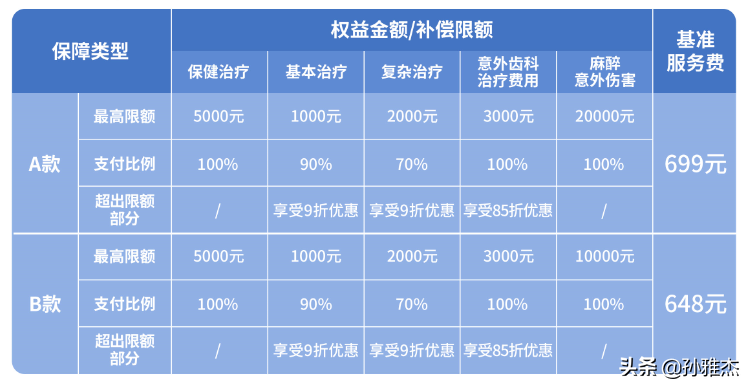 4)、意外齒科調(diào)節(jié)包括外傷縫合、外傷導(dǎo)致的牙周固定、常規(guī)拔牙、根管調(diào)節(jié)等,一年的保額是3000元。