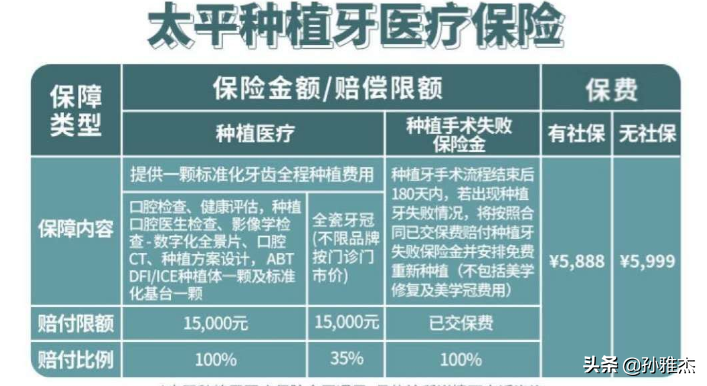 種植牙醫(yī)療險5888元這款產(chǎn)品是屬于中高端植體,產(chǎn)品內(nèi)含種植體和種植手術(shù)費用,牙冠報銷35%。