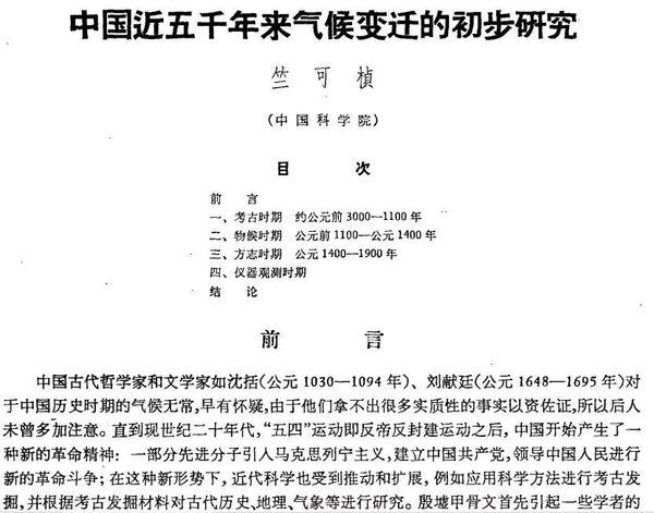 竺可楨《中國近五千年來氣候變遷的初步研究》。