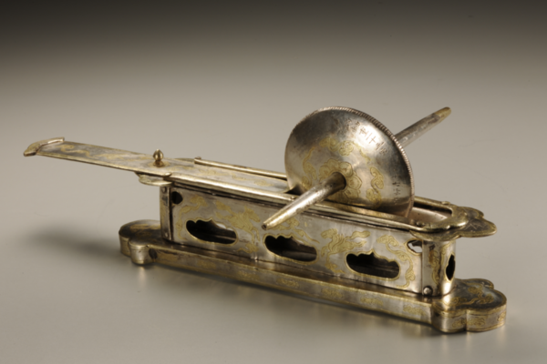 唐鎏金鴻雁紋銀茶槽子、唐鎏金團(tuán)花銀碢軸。