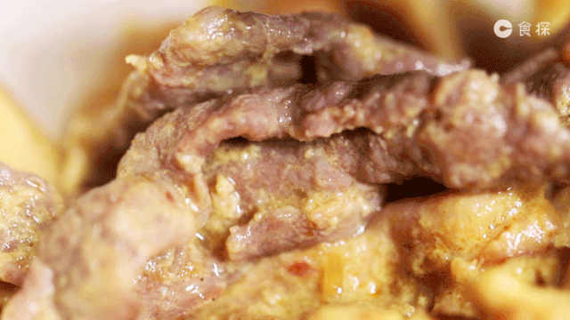 劃破上面的雞蛋,讓每塊牛肉裹滿蛋液才下鍋,一口塞滿,一層蛋液、一層咖喱,如果這時再來一碗飯,淋上咖喱叻沙,這頓飯就可以晉升成年度滿足的晚飯之一了嘻嘻~