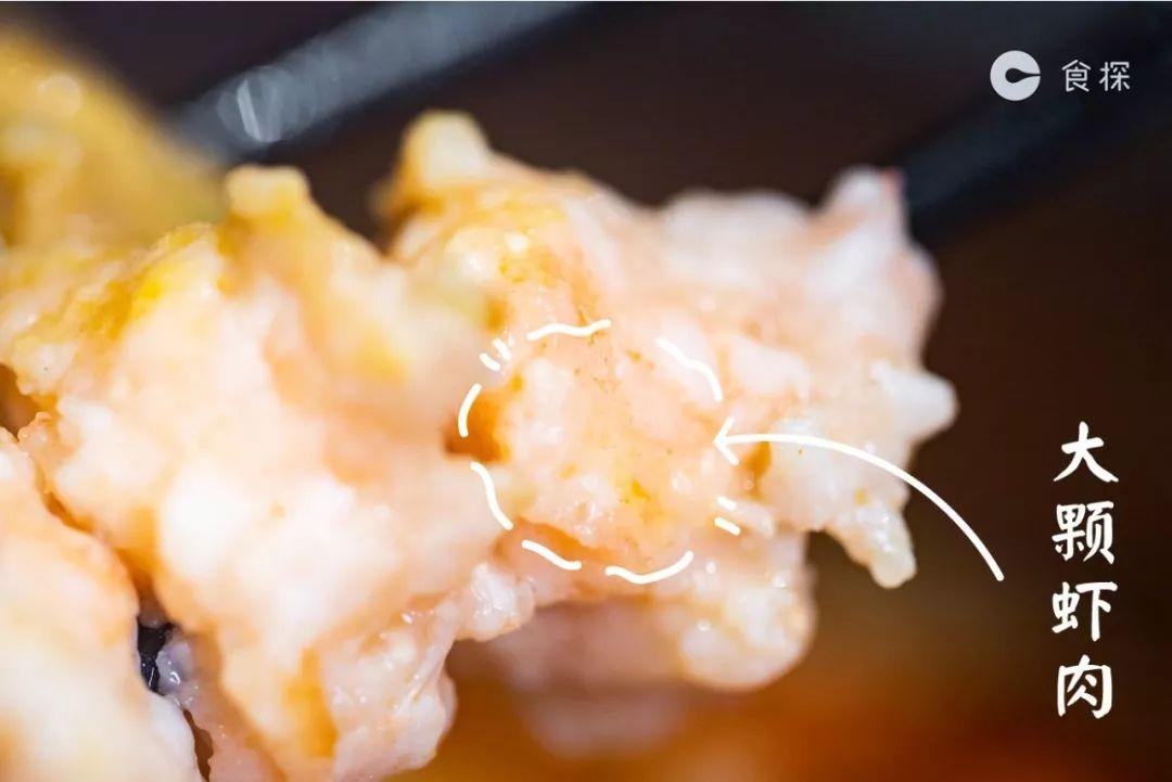 肉眼可見的大顆蝦肉藏在蝦滑里,一口下去,感覺每顆牙齒都在和它打乒乓球。