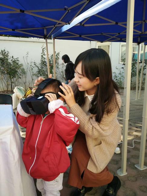 在燕山九號聾啞康復(fù)中心,一群可愛又特殊的孩子們在志愿者們的帶領(lǐng)下正在上一堂別開生面的“海洋之美”課程。孩子們戴上VR眼鏡以潛水員的視角來感受海底世界的魅力,和海龜面對面打招呼,在魚群中暢游,游弋在珊瑚礁中,近距離觀察鯊魚……在隨后的課程教學(xué)中,孩子們用他們自己的方式積極和志愿者老師們互動,表達(dá)著他們對大海的熱愛。