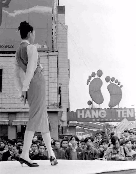 20世紀90年代,剛開業(yè)不久的太平洋百貨門口的時裝秀(圖片來源:2018年11月14日《華西都市報》)