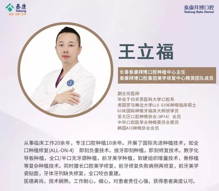 2007年長(zhǎng)春泰康拜博口腔(原惠愛(ài)口腔)率先開(kāi)展了種植牙技術(shù),在2016年成立了一站式數(shù)字化種植中心,由泰康拜博口腔東北大區(qū)醫(yī)療總監(jiān)曲冬、東北大區(qū)種植中心主任高勁松兩位主任醫(yī)師主持工作,帶領(lǐng)數(shù)十名中高級(jí)職稱專業(yè)種植醫(yī)生開(kāi)展種植工作。
