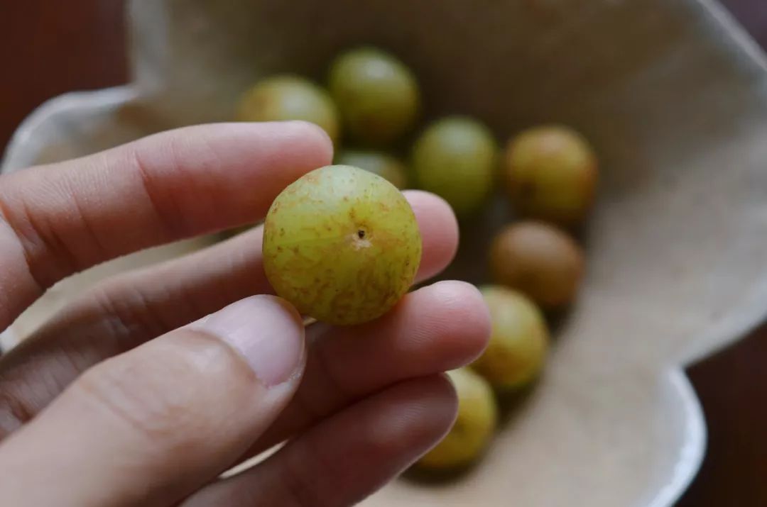新鮮的余甘子味道很妙,熟成的余甘子吃起來甜中帶點(diǎn)微澀,沒有特別熟的余甘子吃起來則是酸酸澀澀。
