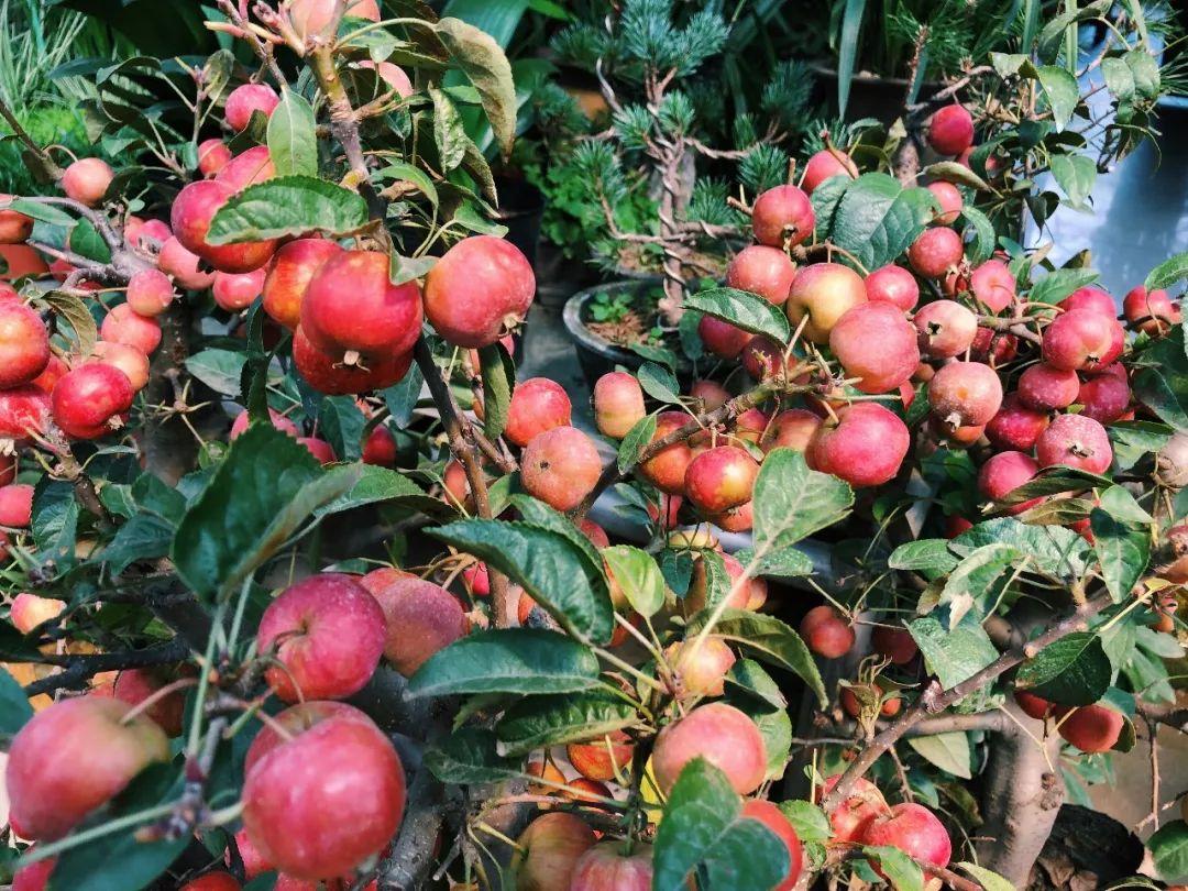 沙果樹跟蘋果樹長(zhǎng)得極其相似,結(jié)滿果子的沙果樹很美,沙果總是一簇簇長(zhǎng),一個(gè)枝頭壓著一大坨果子。