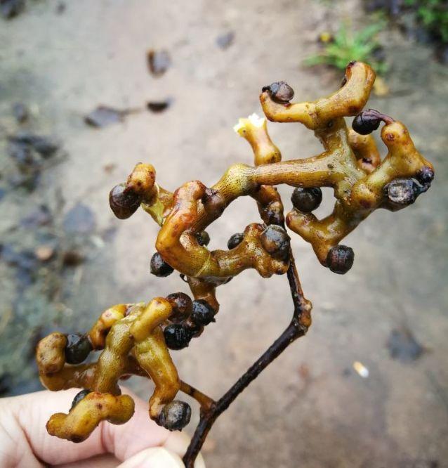 和八月瓜很相似的還有另一種俗名貓兒屎的果子,長(zhǎng)相和結(jié)構(gòu)跟八月瓜差別不大,只是個(gè)頭小小,似是真只有貓屎般粗細(xì)。