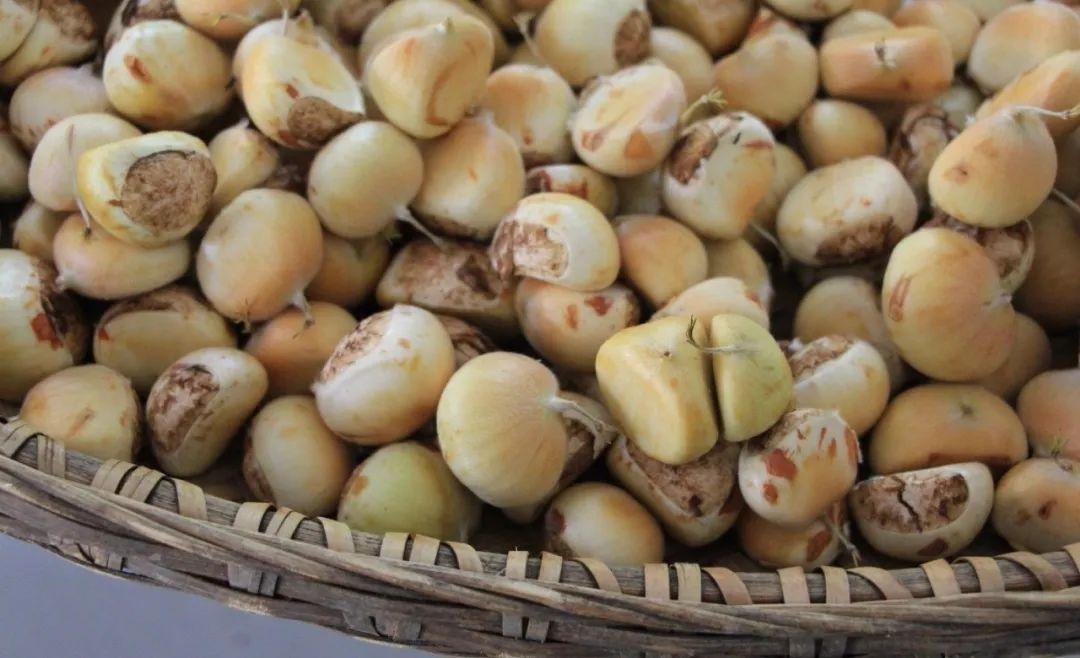 和板栗相似的還有種叫錐栗的東西,錐栗是貨真價(jià)實(shí)的山貨,結(jié)構(gòu)跟板栗差不多,外披刺甲,只是個(gè)頭更小。顧名思義,錐栗是錐形,像個(gè)熱氣球一樣,上圓下尖,口感比板栗要結(jié)實(shí)。
