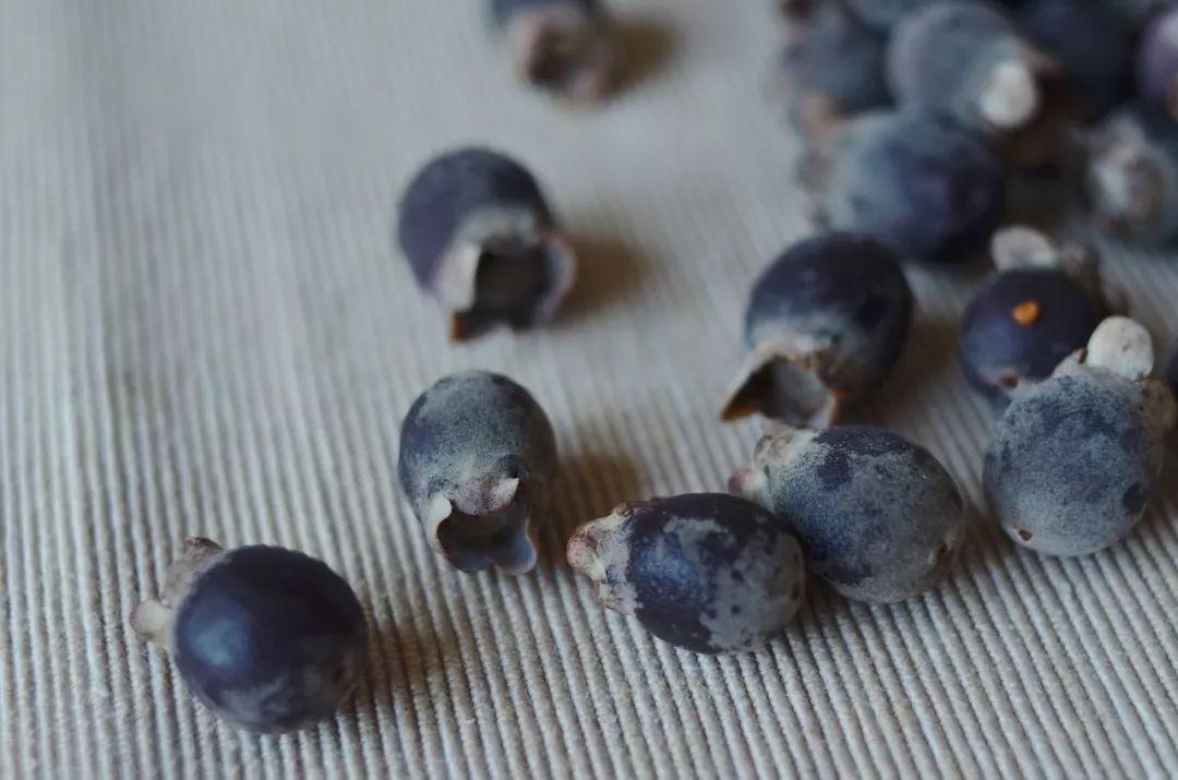 捻子的樣子很好認(rèn),成熟之后紫色灰撲撲的,果子構(gòu)造跟藍(lán)莓相仿,只不過身材是長(zhǎng)橢圓形的。
