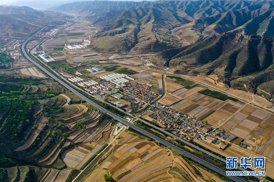宋家溝村村民在種谷子(5月19日攝,無人機照片)。 新華社記者 曹陽 攝