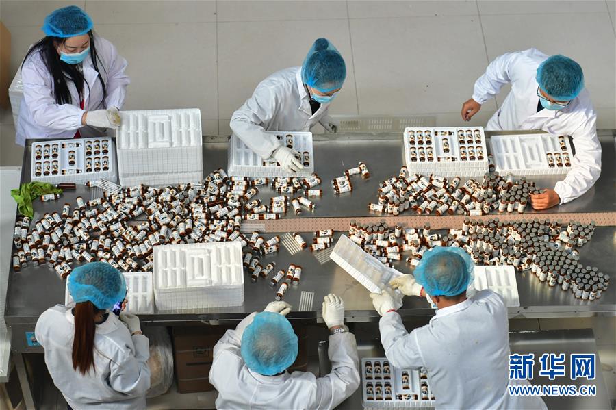 宋家溝村村民在食品加工廠包裝沙棘飲料(5月10日攝)。 新華社記者 曹陽 攝