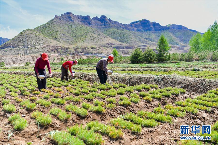 宋家溝村村民在給樹苗施肥(5月19日攝)。 新華社記者 曹陽 攝
