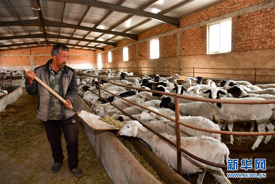 宋家溝村村民賀毛小在養(yǎng)殖合作社內喂羊(5月19日攝)。 新華社記者 曹陽 攝