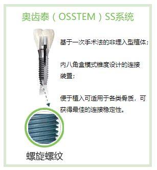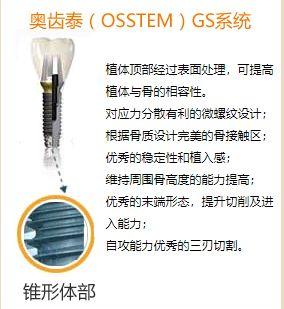 奧齒泰種植體是由韓國奧齒泰公司精心研發(fā)的OSSTEM種植系統(tǒng),OSSTEM種植體先后獲得ISO-9001、CE、和FDA(第Ⅲ類)、SFDA等認(rèn)證,是目前國際上四大的種植技術(shù)之一,被譽(yù)為適合亞洲人的種植體。