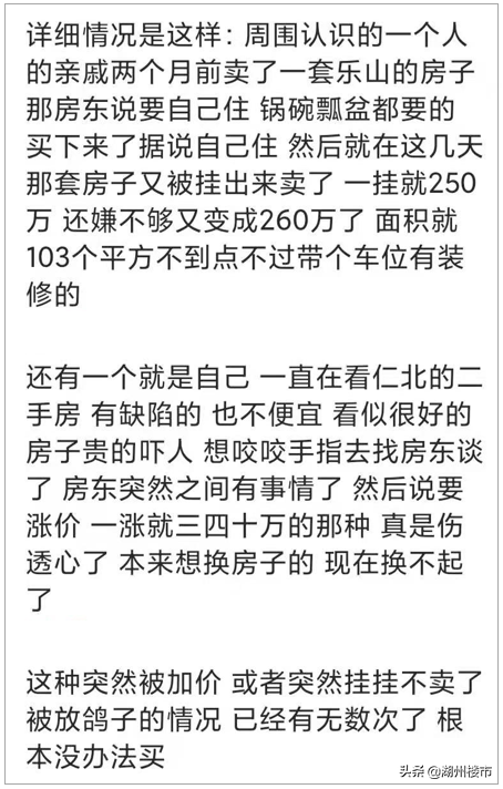 二手房主坐地起價(jià),在南潯也有跡可循。有網(wǎng)友表示,房東臨時(shí)漲價(jià)幾萬(wàn),一氣之下直接買(mǎi)了新房項(xiàng)目。