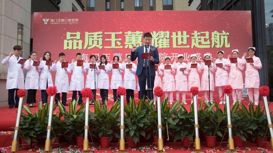 后海門玉蕙口腔醫(yī)院的全體醫(yī)護(hù)人員,在趙國(guó)峰院長(zhǎng)的帶領(lǐng)下進(jìn)行莊嚴(yán)宣誓,表示在今后的調(diào)節(jié)過(guò)程中,玉蕙口腔真誠(chéng)對(duì)待每一位患者,全身心服務(wù)每一位患者的決心。