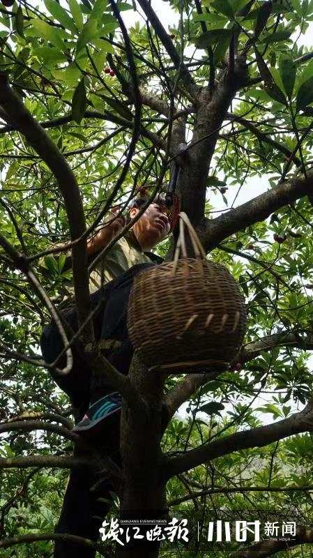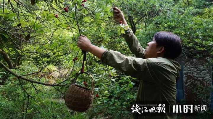 楊梅嶺村的村民采楊梅,有意思的地方就是每個人腰上背著茶簍,“我們楊梅嶺村,春有西湖龍井,夏有楊梅,秋有桂花,我們采茶采楊梅,這個茶簍都用得上?!贝迕癫翊蠼闾貏e自豪介紹著,拿著剛剛采下的一顆楊梅遞給小時新聞記者嘗,一股鮮甜涌入口中。