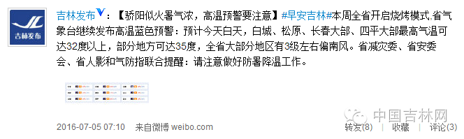 吉林省氣象臺繼續(xù)發(fā)布高溫藍色預警:局地達35℃