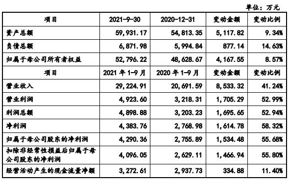 2021年1-9月,家鴻口腔實現(xiàn)營業(yè)收入2.92億元,同比增長41.24%;歸屬于母公司股東的凈利潤4290.36萬元,同比增長55.68%;扣除非經(jīng)常性損益后歸屬于母公司股東的凈利潤4096.05萬元,同比增長55.80%;經(jīng)營活動產(chǎn)生的現(xiàn)金流量凈額3272.61萬元,同比增長11.40%。