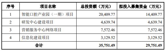家鴻口腔主要從事固定義齒、活動義齒和正畸產(chǎn)品的研發(fā)、生產(chǎn)及銷售,以及口腔修復(fù)類醫(yī)療器械產(chǎn)品經(jīng)營銷售等業(yè)務(wù)。公司擬募集資金2.98億元,分別用于智能口腔產(chǎn)業(yè)園(一期)項目、研發(fā)中心建設(shè)項目、營銷服務(wù)中心網(wǎng)絡(luò)項目、信息化建設(shè)項目。