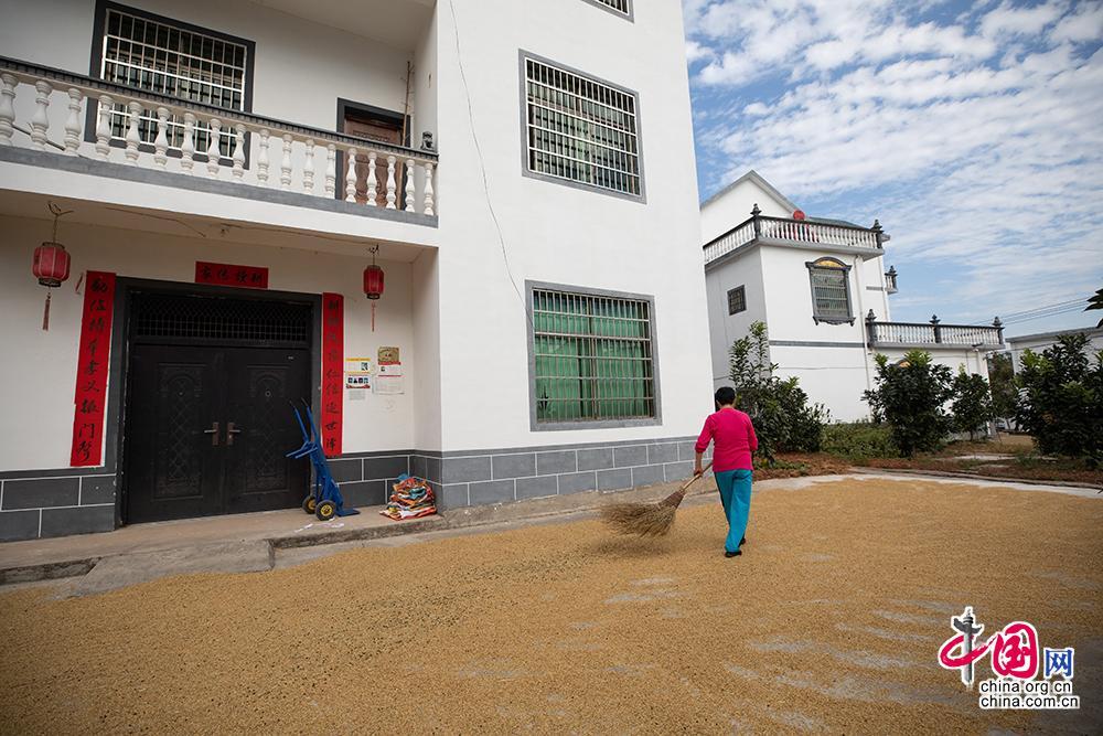 圖為蘇家塘村民在樓房前勞作。中國網(wǎng)記者倫曉璇攝