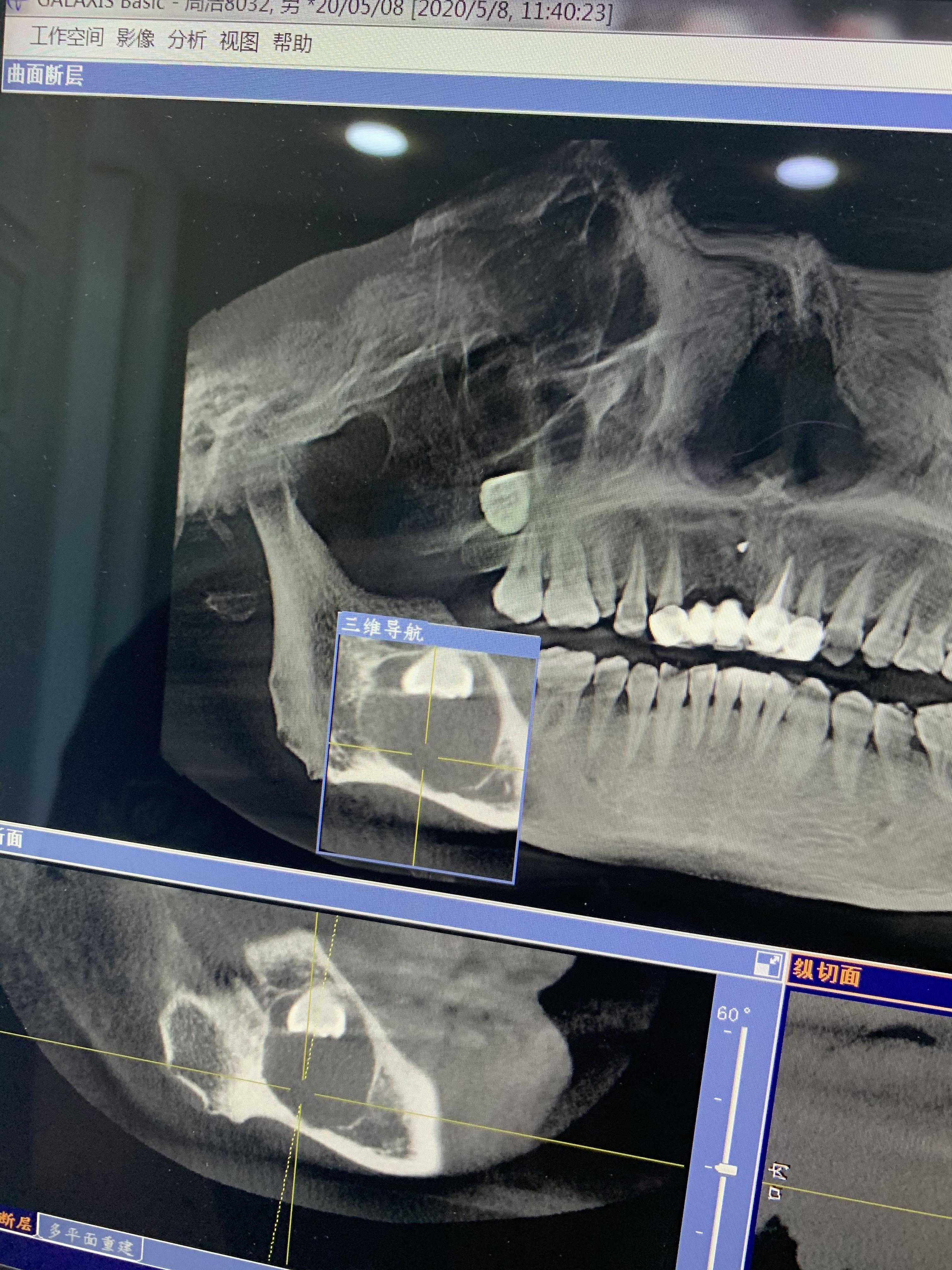 5月8日上午9點(diǎn)半,牙博士醫(yī)生把我叫到房間看片子,打開我的片子,他一句“我的天,這應(yīng)該是囊腫,骨頭都要斷了,天啦骨頭都跟紙一樣薄了,不行,我去找院長(zhǎng)來(lái)”,他出去了,我一個(gè)人坐在那楞住了,這不是智齒嗎?什么囊腫?骨頭斷了?我的天,我瞬間感覺我是不是要廢掉了~